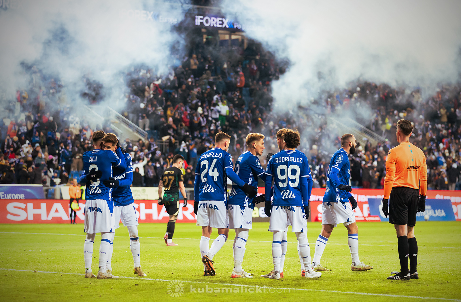 Lech: 41. Bartosz Mrozek – 2. Joel Pereira (63, 20. Robert Gumny), 72. Mateusz Skrzypczak, 16. Antonio Milić, 15. Michał Gurgul (85, 7. Yannick Agnero) – 8. Ali Gholizadeh (85, 4. João Moutinho), 43. Antoni Kozubal, 99. Pablo Rodríguez, 24. Filip Jagiełło (63, 10. Patrik Wålemark), 14. Leo Bengtsson (63, 77. Luis Palma) – 9. Mikael Ishak