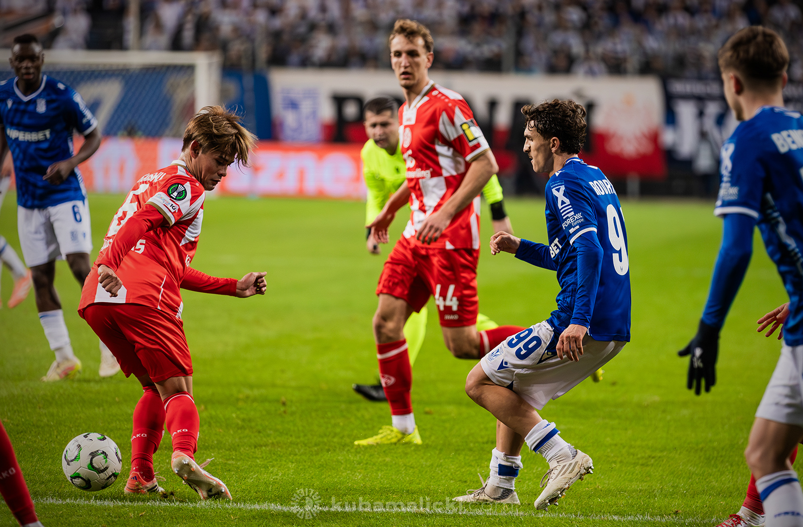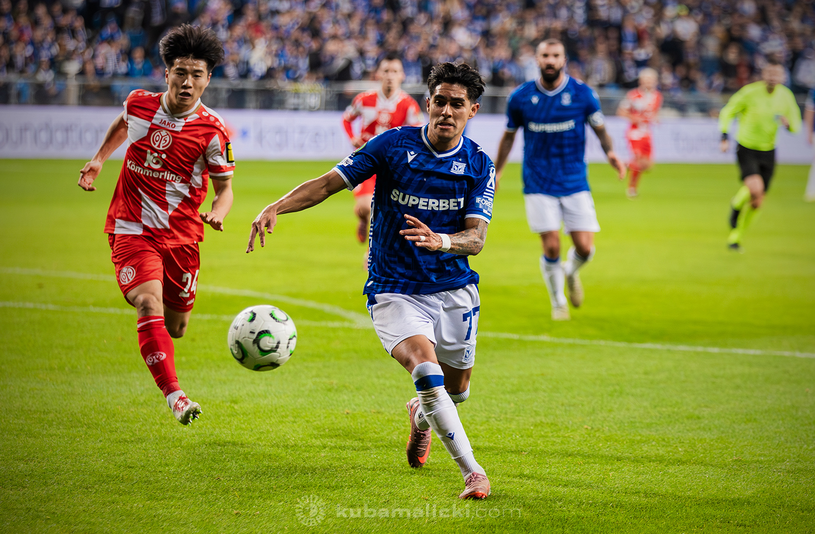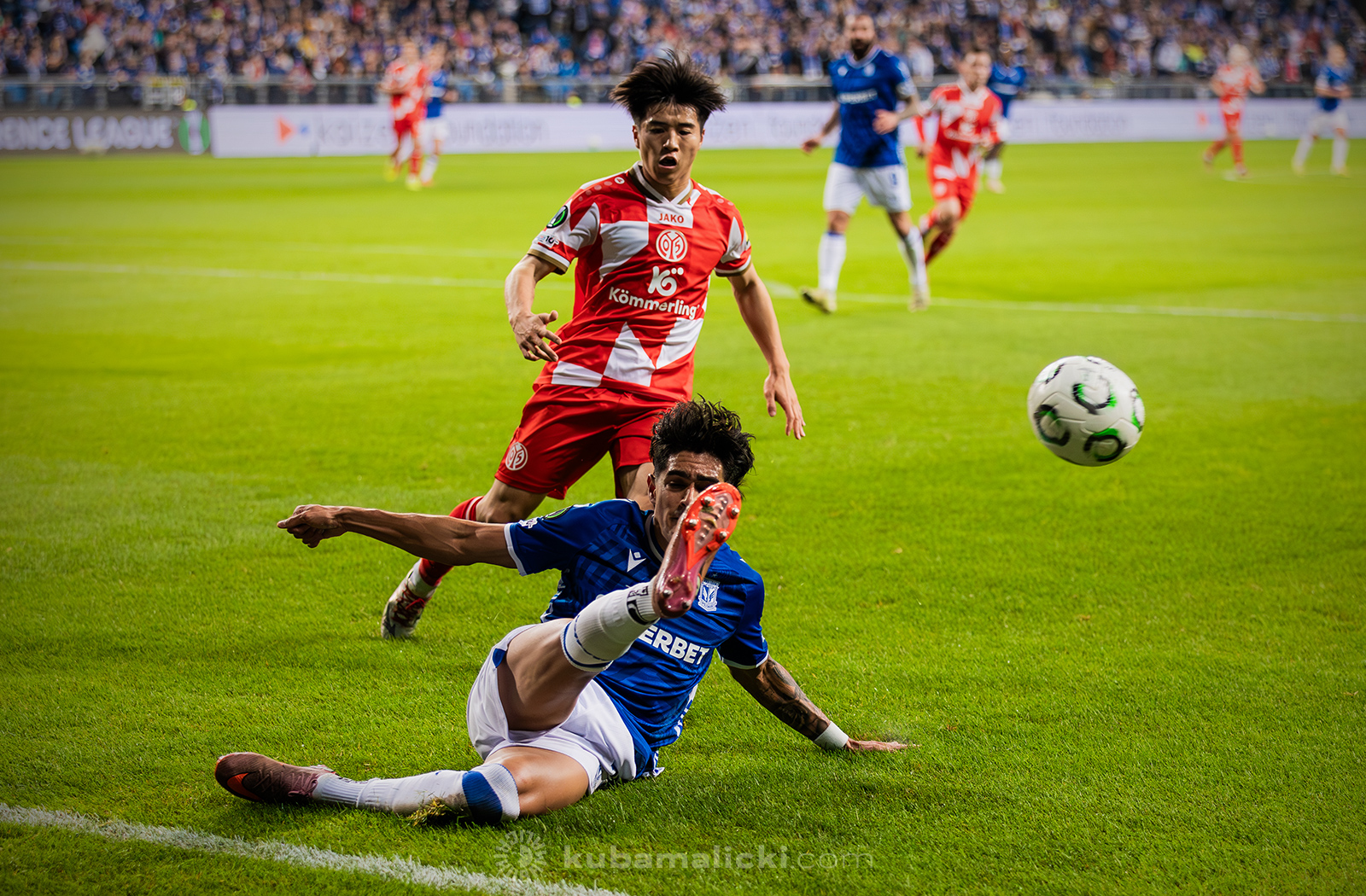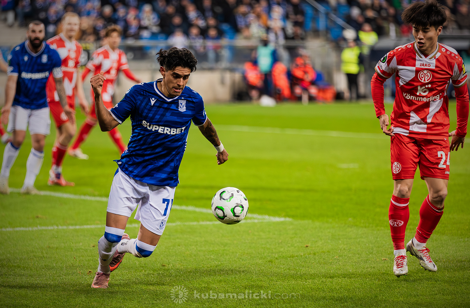 Czwartkowy mecz długo nie układał się po myśli poznaniaków. Od początku Mainz miało przewagę i konstruowało groźne akcje pod bramką Bartosza Mrożka. W 28. minucie Japończyk Sōta Kawasaki strzelił pierwszego gola. 4 minuty później goście strzelili drugiego gola, którego jednak sędzia nie uznał, orzekając spalony po wideoweryfikacji. Wynik meczu ustalił kapitan Michael Ishak, który wykorzystał rzut karny po faulu Kawasakiego na Luisie Palmie.