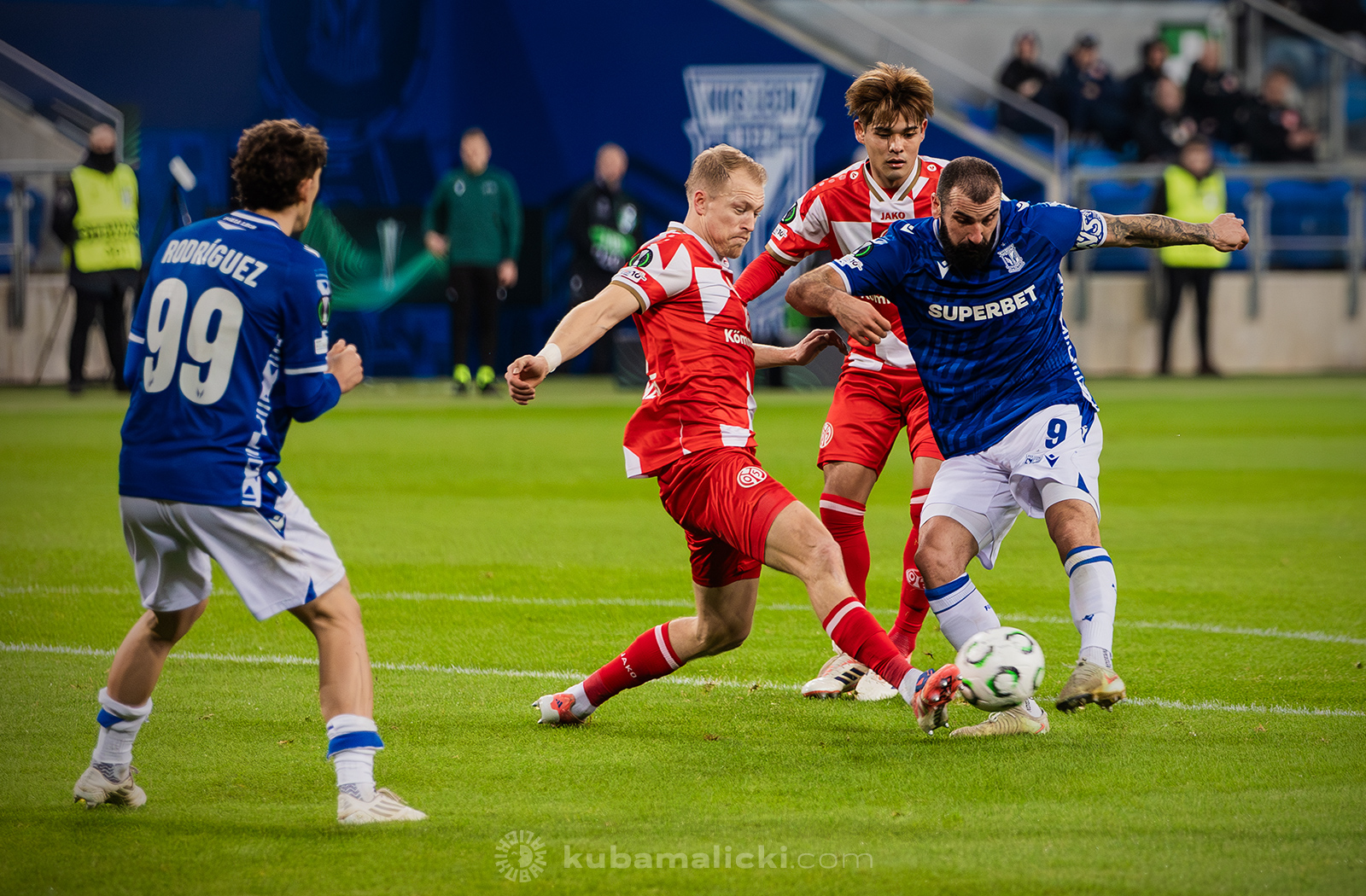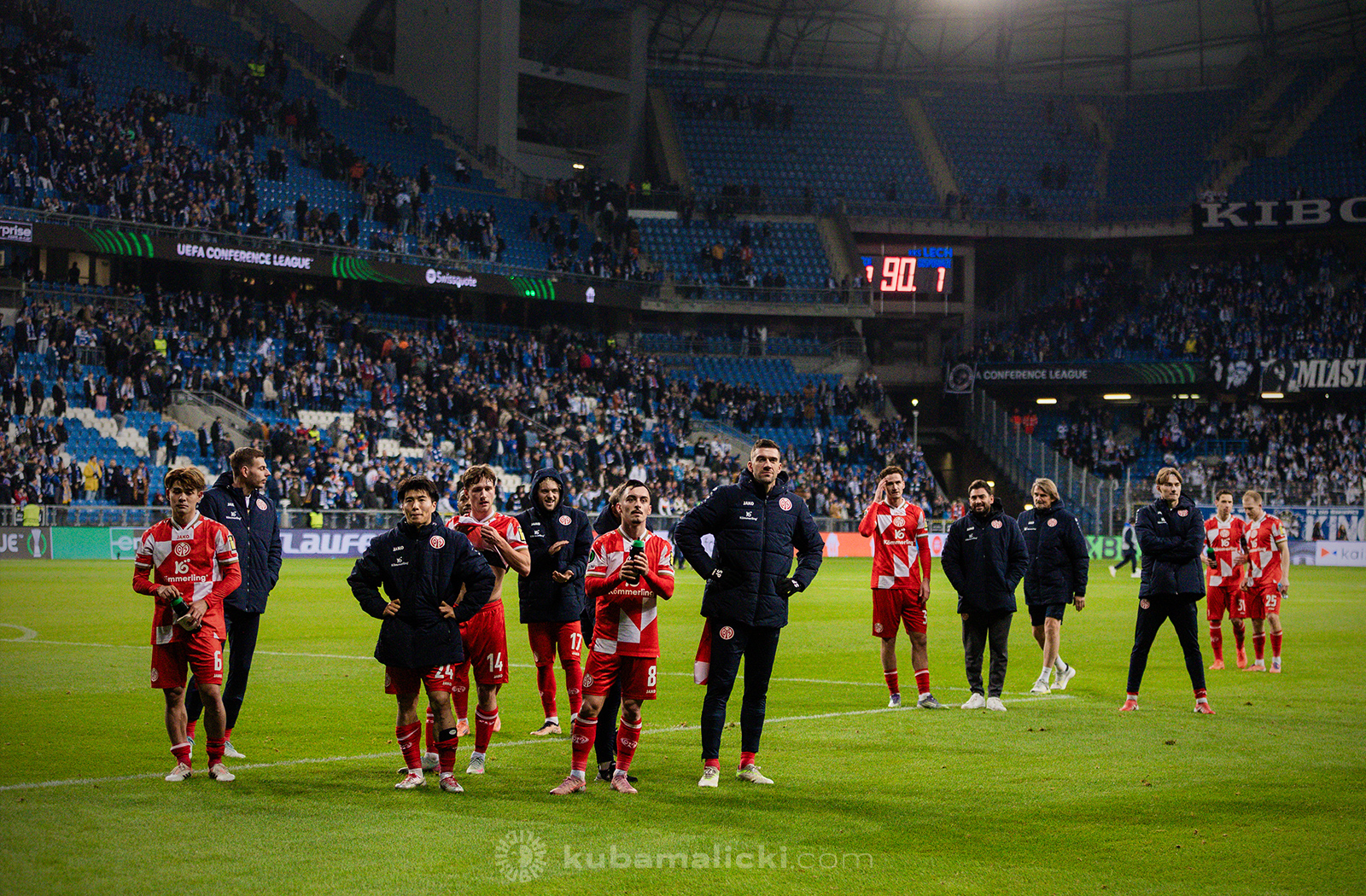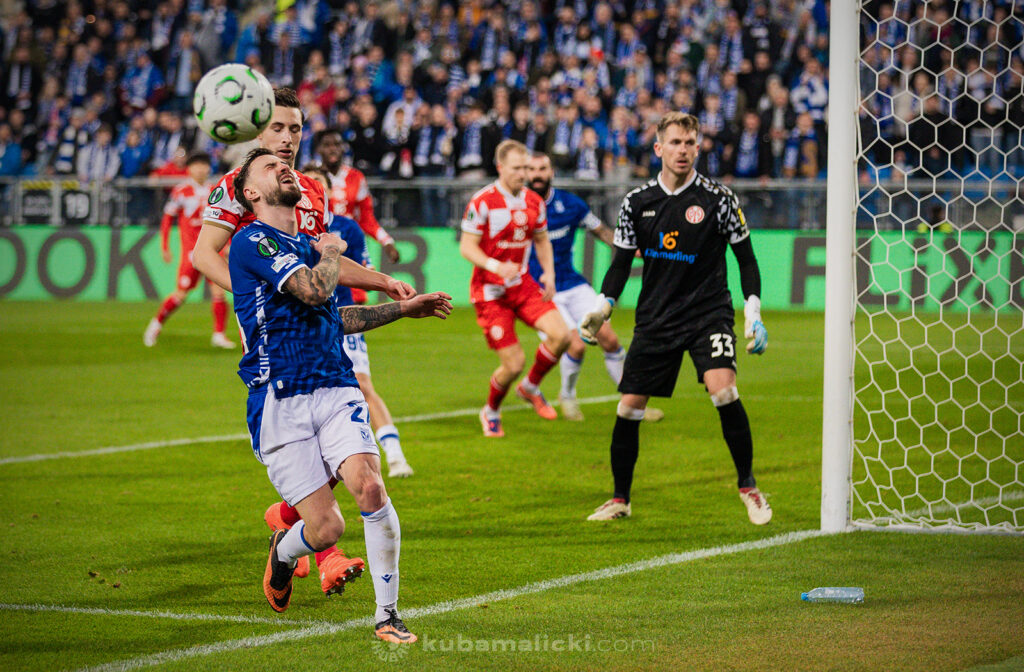 Ostatni mecz Lecha na własnym stadionie w 2025 roku miał być okazją na zapewnienie awansu przynajmniej do 1/16 finału Ligi Konferencji. Zwycięstwo „Kolejorza” pozwoliłoby ze spokojem jechać za tydzień do Ołomuńca, bowiem 9 punktów oznaczało pewną grę w dalszej części rozgrywek. Po domowych wygranych z Rapidem i Lausanne-Sports gospodarze podejmowali drużynę z Moguncji, która w Bundeslidze zajmuje ostatnie miejsce. Na korzyść gości przemawiały więc jedynie historyczne statystyki, bowiem Lech nigdy dotąd nie pokonał niemieckiej drużyny w europejskich pucharach.
