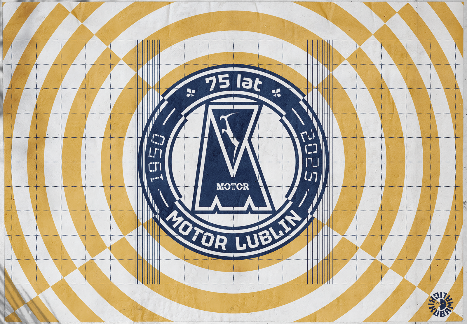 Jubileuszowy emblemat Motoru Lublin został oparty na obowiązującej formie herbu. Geometryczny font oraz przełamanie okrągłej tarczy nadają oprawie graficznej bardziej sportowy charakter. Obrys tarczy emblematu może być również wykorzystany jako tło w materiałach marketingowych. Jubileuszowy key visual zawiera elementy związane z miastem i regionem – od renesansowych kafelków inspirowanych elewacjami kamienic w Rynku po ozdobne listki winorośli, nawiązujące do herbu miasta.
