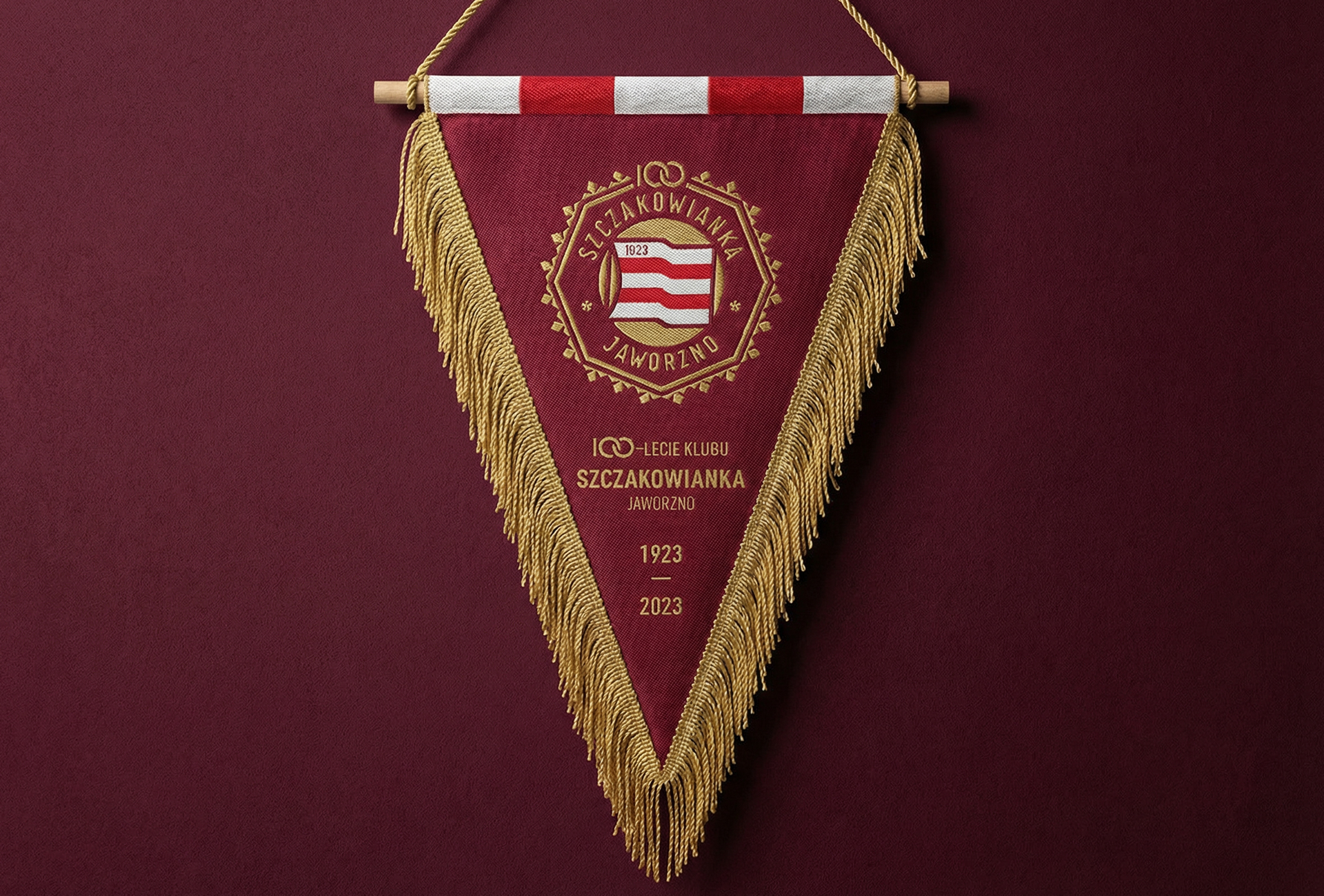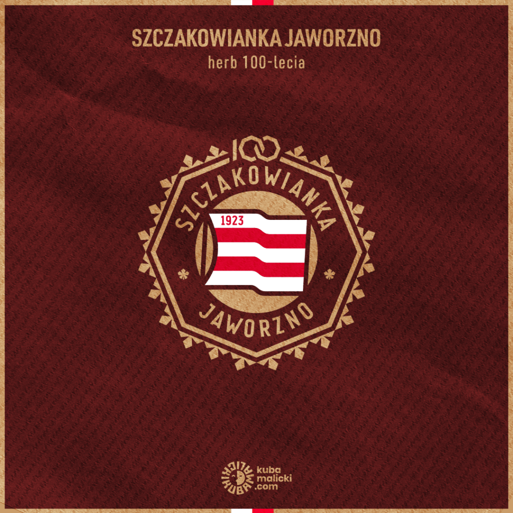 Znak jubileuszowy Szczakowianki Jaworzno został zbudowany na bazie charakterystycznych dla klubu elementów. Oktagonalny obrys herbu z biało-czerwoną chorągwią – inspirowaną 100 lat temu znakiem Cracovii – został wzbogacony o wieniec z listków jaworu.